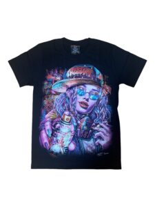 Graffiti Girl Hiphop Tshirt 4D Piercing Spray Girl Glow in the Dark