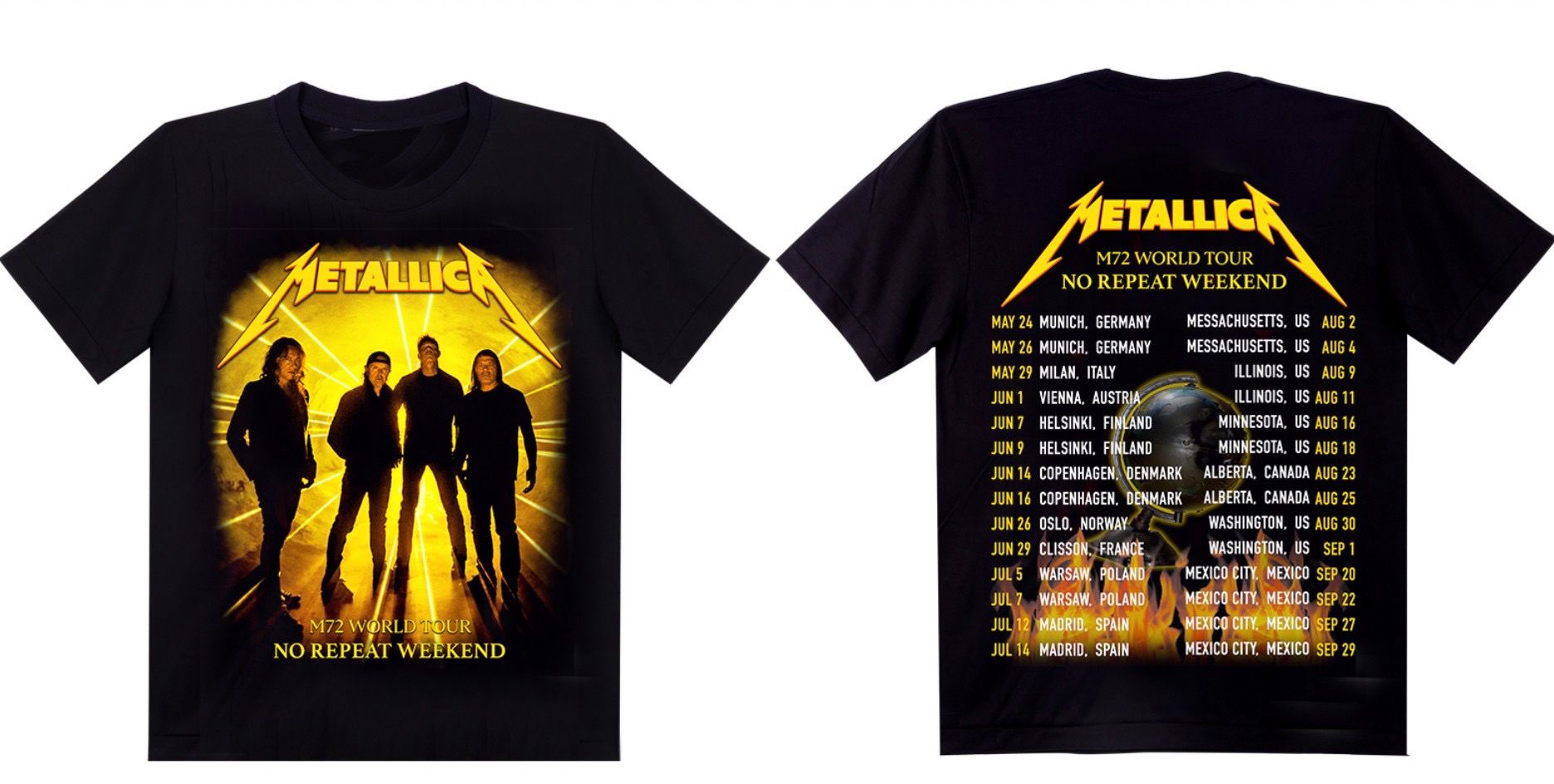 Metallica M72 World Tour No Repeat Weekend Glow in The Dark Up to 5XL